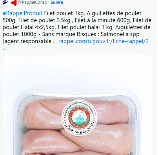 Attention, soyez particulièrement vigilant et vérifiez bien votre frigo. Le site Rappel Conso vient de signaler, ce vendredi 6 février, le rappel d’aiguillettes de poulet halal vendues notamment dans les magasins Carrefour et Intermarché partout en France.