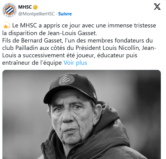 « Le MHSC a appris ce jour avec une immense tristesse la disparition de Jean-Louis Gasset. Fils de Bernard Gasset, l’un des membres fondateurs du club Pailladin aux côtés du Président Louis Nicollin, Jean-Louis a successivement été joueur, éducateur puis entraîneur de l’équipe première à trois reprises, la dernière d’octobre 2024 à avril 2025.
