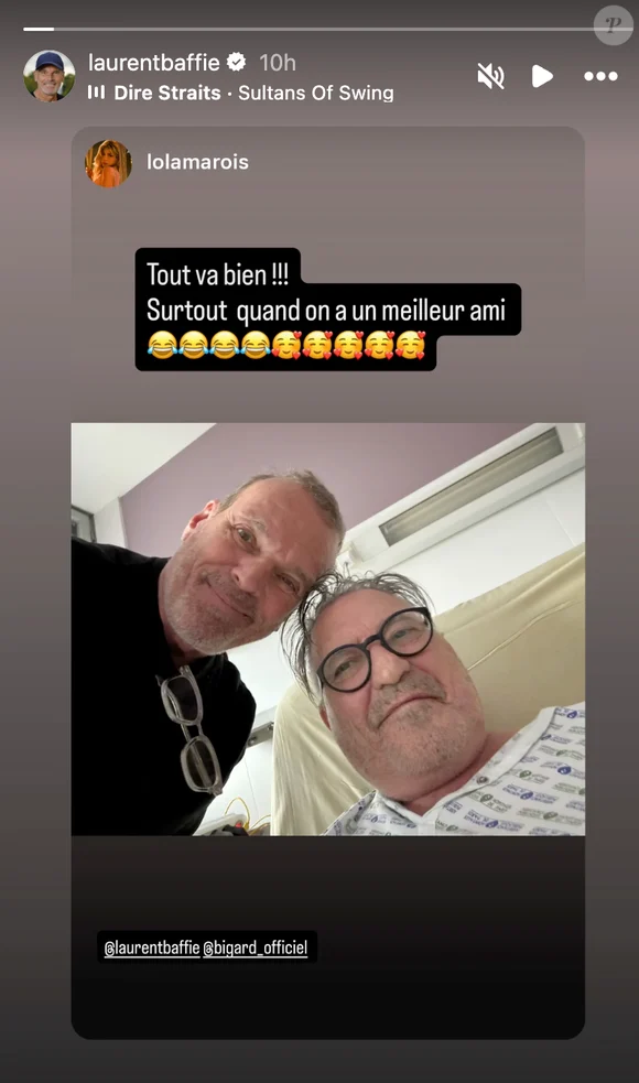 Plusieurs proches de Jean-Marie Bigard ont pu lui rendre visite. Laurent Baffie fait partie des personnes qui n’ont pas hésité à se déplacer pour lui apporter soutien et réconfort. L’humoriste s’est rendu à l’hôpital pour voir son ami et immortaliser ce moment avec une photo, qu’il a ensuite partagée sur les réseaux sociaux. Sur le cliché, Jean-Marie Bigard apparaît souriant et visiblement en meilleure forme, preuve que son moral reste intact malgré l’incident. “Tout va bien !!! Surtout quand on a un meilleur ami”, a commenté Lola Marois en story Instagram.