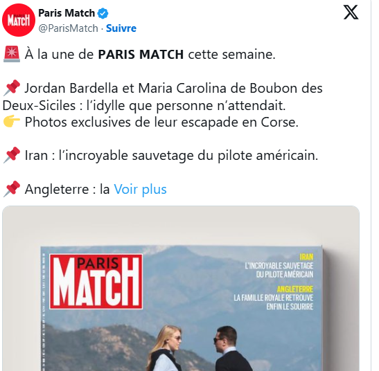 Un reportage photos de Paris-Match, réalisé visiblement avec l’aval du couple, accrédite les rumeurs de liaisons entre le président du RN Jordan Bardella et Maria Carolina de Bourbon des Deux-Siciles