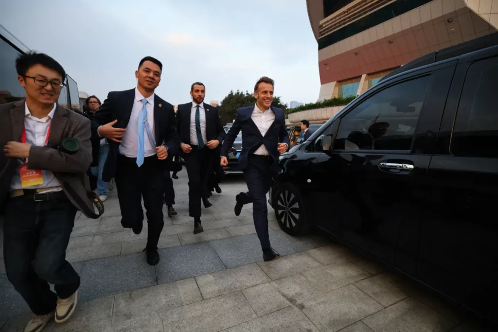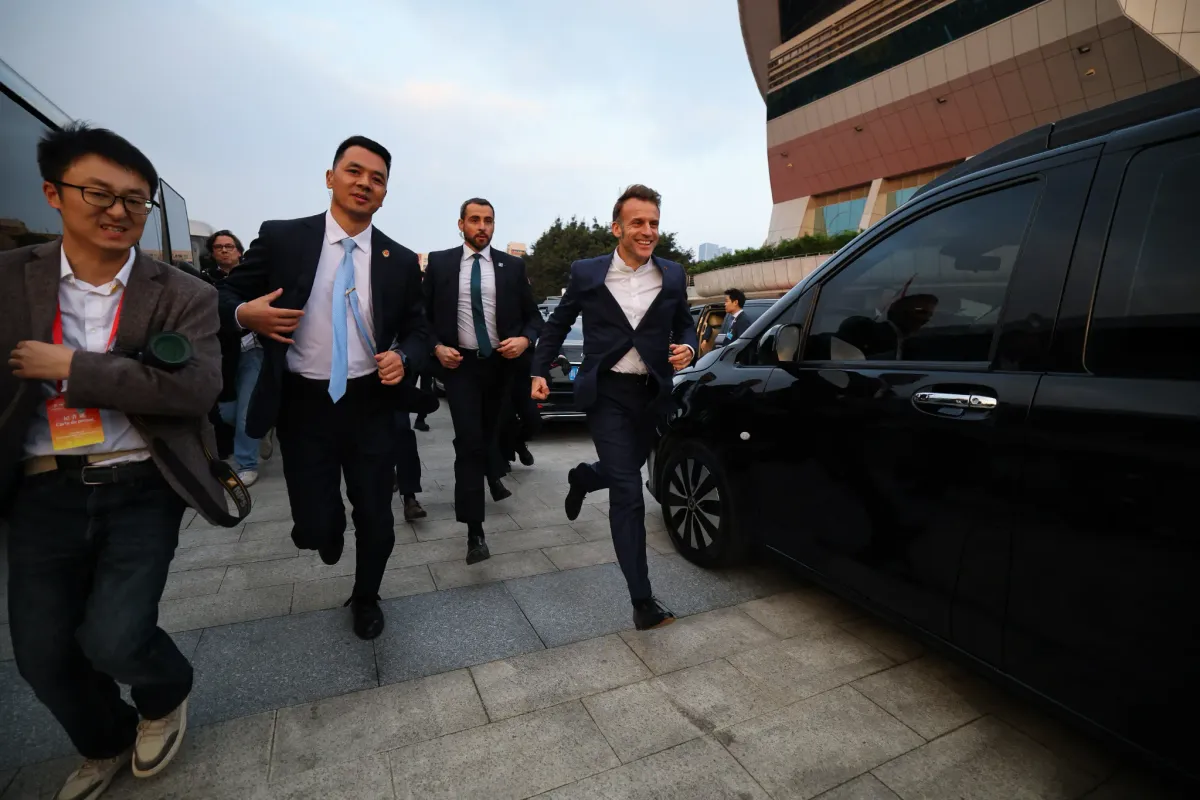 L’étonnante image d’Emmanuel Macron qui court pour échapper aux services de sécurité chinois et s’offrir un bain de foule