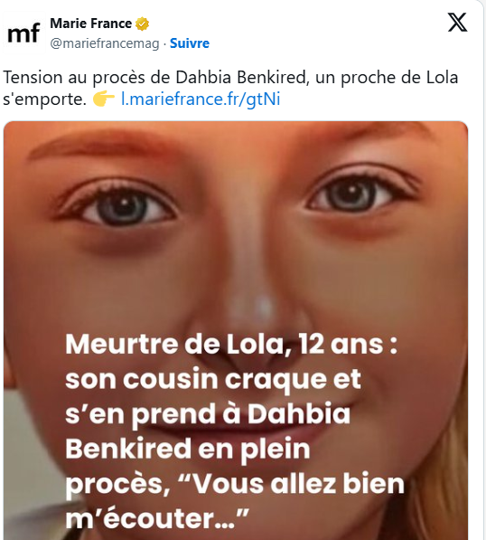 Quant aux “oublis”, aux “voix” qu’elle assure entendre, aux propos “mystiques” qui justifieraient ses crimes selon elle, les psychiatres sont formels, il s’agit d’une manipulation de la part de Dahbia Benkired pour les manipuler. Les experts n’y croient pas. Tout comme la famille de Lola, dont le cousin de la fillette, dénonce avec force devant la cour. Le verdict est attendu aujourd’hui. L’accusée, âgée de 27 ans, risque la réclusion criminelle à perpétuité.