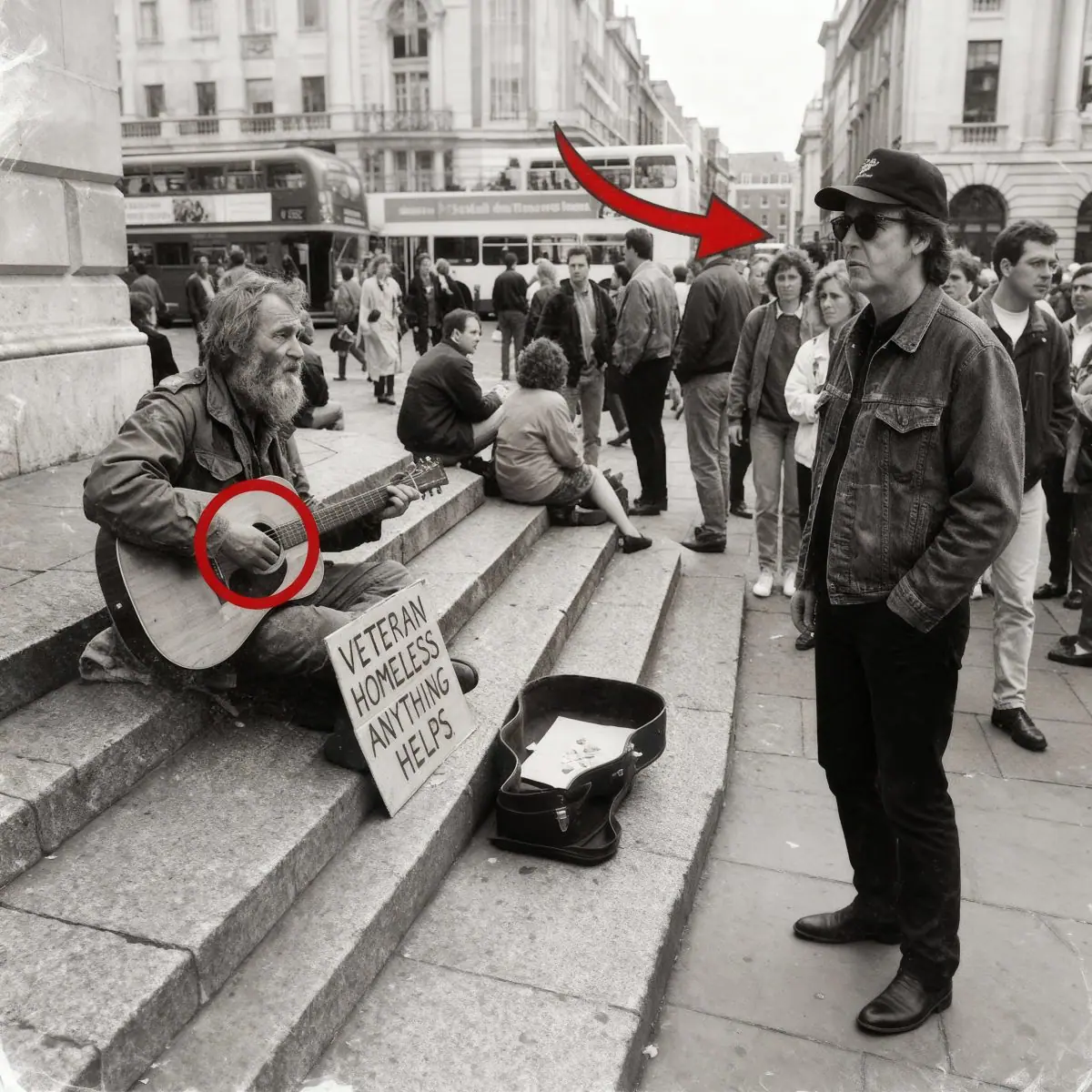 En octobre 2003, Paul McCartney traverse Covent Garden, cherchant à se fondre dans la foule. Artistes de rue, touristes, musique classique ou jongleurs : le décor est vivant, presque bruyant. Et pourtant, une voix rauque perce soudain le vacarme.