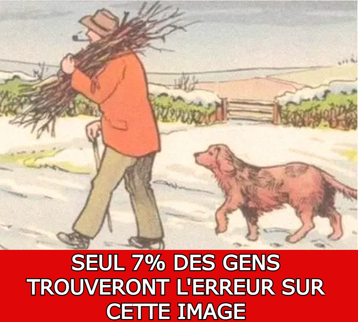 Vous pensez avoir l’œil de lynx et remarquer les moindres petits détails avant tout le monde ? Alors ce défi visuel pourrait bien vous surprendre. À première vue, cette image montre une paisible balade hivernale digne d’une carte postale : un homme avance tranquillement dans la neige avec son chien, dans un décor champêtre aussi calme que charmant. Pourtant, derrière cette scène presque trop parfaite, un détail inattendu se cache… et beaucoup passent à côté au premier regard. Alors, saurez-vous repérer ce qui ne va pas ?