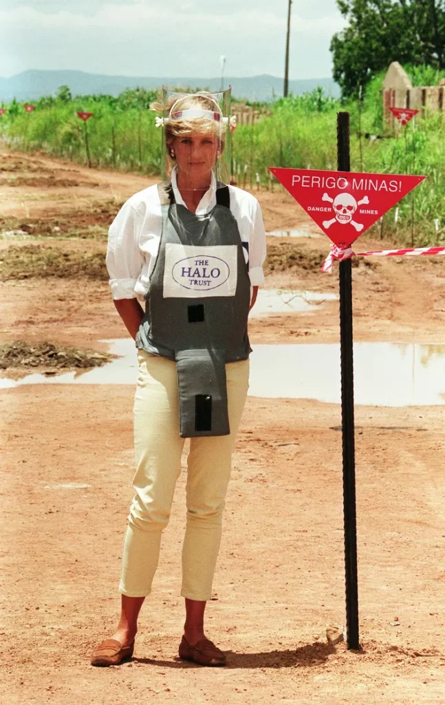 Au cours de ce voyage, Lady Diana s’était également rendue sur un champ de mines sécurisé par l’organisation The Halo Trust (une organisation non-gouvernementale humanitaire qui travaille principalement dans l’élimination des mines et autres explosifs laissés à la fin des conflits, NDLR ), afin d’attirer l’attention sur le sort des victimes mutilées par ces armes. Ces images, largement relayées à travers le monde, contribueront à accélérer la mobilisation internationale et mèneront à la signature du traité d’Ottawa en 1997, interdisant les mines antipersonnel.